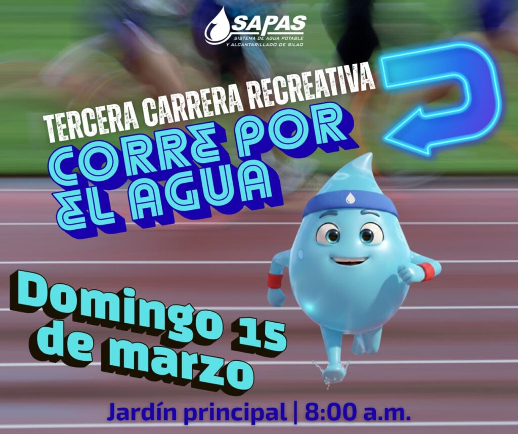 Para conmemorar el Día Mundial del Agua, el Sistema de Agua Potable y Alcantarillado de Silao (SAPAS) celebrará la tercera edición de su carrera familiar y recreativa “#CorrePorElAgua” el domingo 15 de marzo de 2026. La inscripción para participar en la carrera será gratuita.