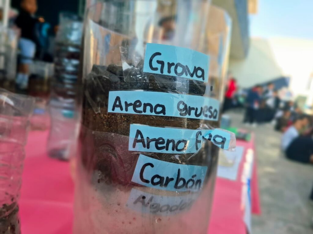 Asimismo, las y los estudiantes del plantel prepararon una galería de maquetas sobre el ciclo y el cuidado del agua, además de una exposición de filtros caseros y los estados del agua (sólido, líquido y gaseoso).