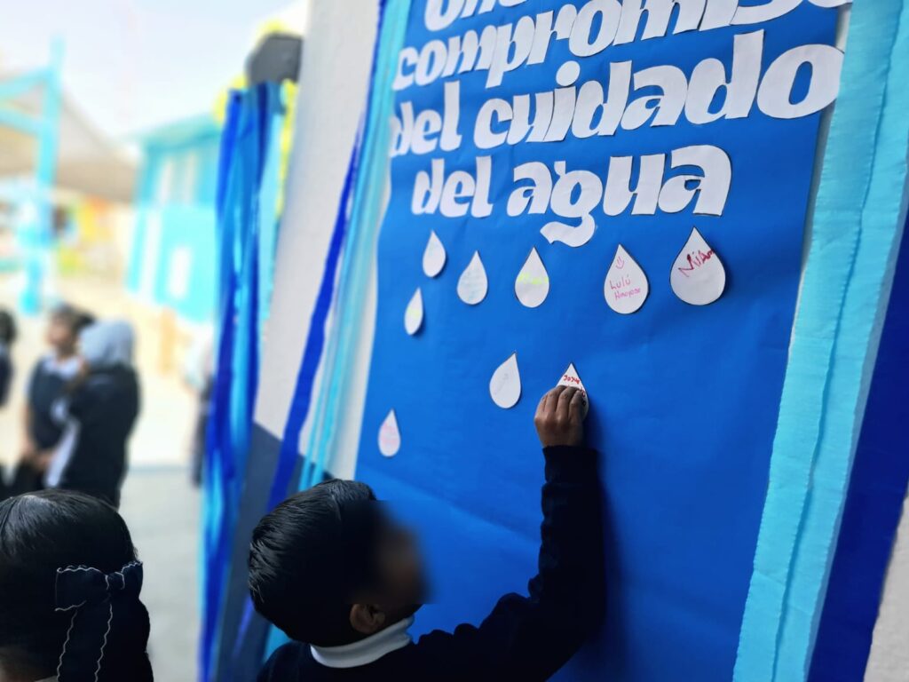 La jornada educativa, diseñada por las y los docentes de este centro escolar, concluyó con la firma del mural, donde las y los participantes se comprometieron a no desperdiciar el agua, ni en los baños de la escuela ni en su casa.